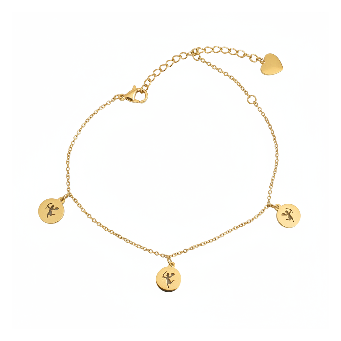 Entdecken Sie den Reiz der Zartheit mit unserem goldfarbenen Armband, gefertigt aus hochwertigem Edelstahl, das mit seinem subtilen Glanz besticht. Es ist mit charmanten runden Anhängern verziert, die das Symbol des Schützen mit Pfeil und Bogen zeigen und dem Schmuck eine persönliche Note verleihen. Dies ist ein ideales Accessoire für Frauen, die Eleganz und einzigartige Akzente schätzen. Perfekt für den Alltag oder besondere Anlässe, um den individuellen Stil zu unterstreichen. Der verstellbare Verschluss sorgt für eine perfekte Passform an jedem Handgelenk.