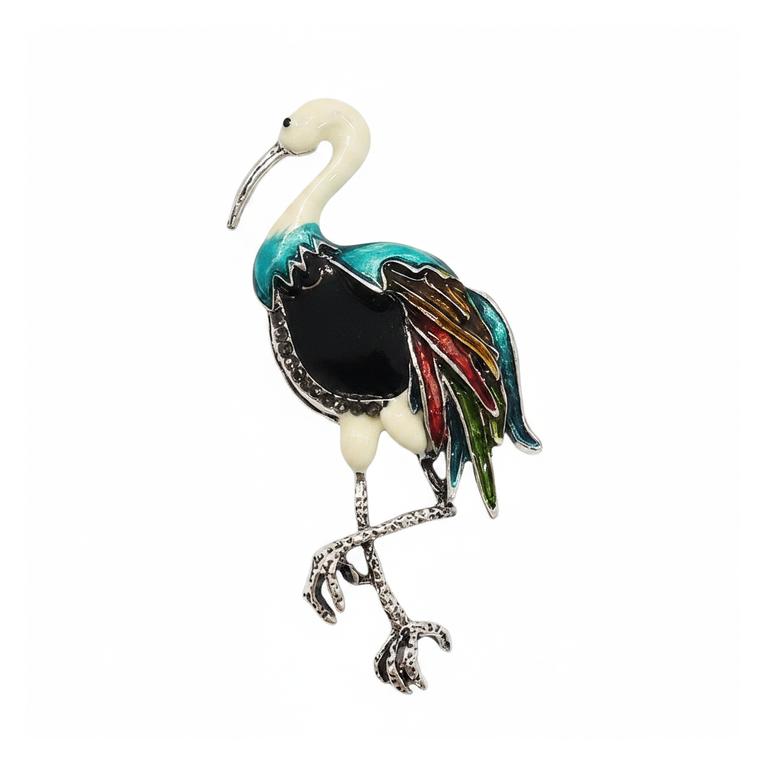 Verleihen Sie Ihrem Look einen Hauch von exotischem Charme mit dieser faszinierenden Ibis-Vogelbrosche. Mit Liebe zum Detail gefertigt, besticht sie durch wunderschöne, lebendige Emaillefarben, die alle Blicke auf sich ziehen. Dezente Strasssteine verleihen ihr ein zartes Funkeln und machen sie zu einem idealen Akzent für jeden Anlass. Perfekt zum Anstecken an Blazer, Pullover oder Handtasche, um Ihren individuellen Stil zu unterstreichen.