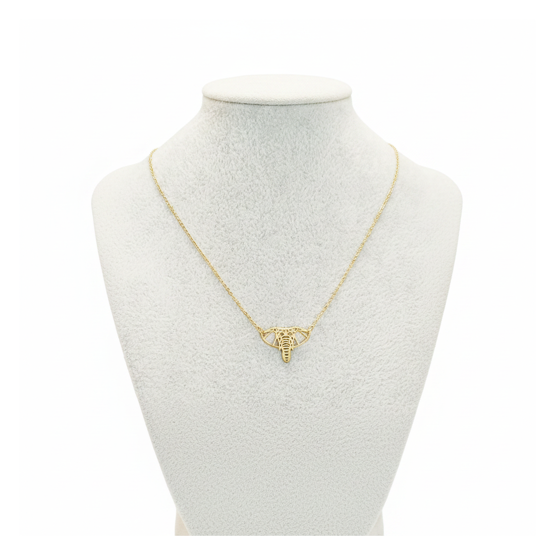 Entdecken Sie den Charme ferner Reisen mit der Elefanta Halskette, die mit einem faszinierenden, kunstvoll gefertigten Elefantenkopf-Anhänger begeistert. Ihr durchbrochenes Design und goldener Glanz verleihen jedem Outfit eine subtile Eleganz. Ideal für den Alltag sowie besondere Anlässe, wird diese Halskette Ihren einzigartigen Stil unterstreichen. Mit Liebe zum Detail gefertigt, ist sie eine wunderschöne Ergänzung Ihrer Schmucksammlung.