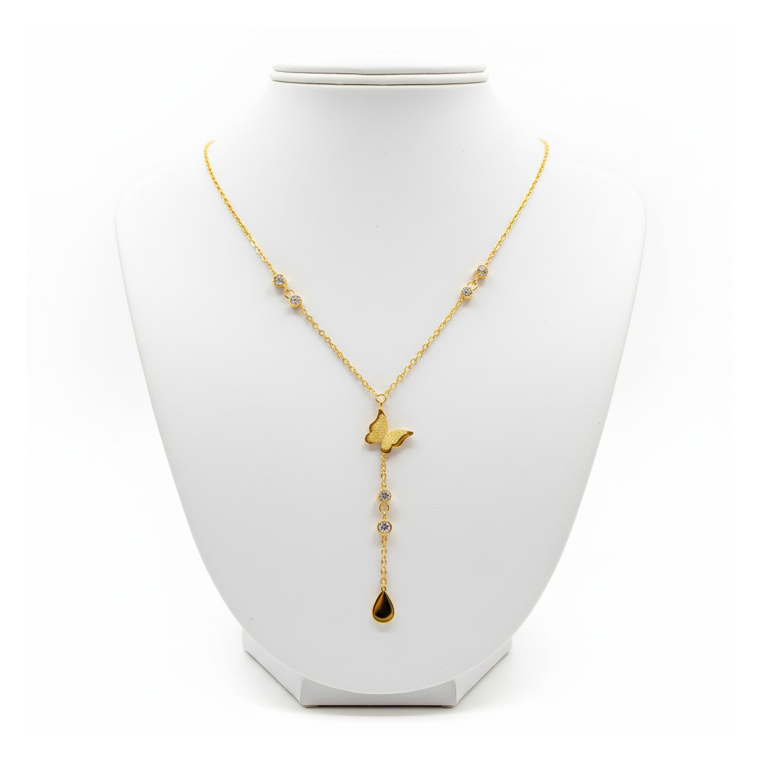 Entdecken Sie den Charme der Halskette "Schmetterlings-Aura", die mit ihrer Zartheit und ihrem Glanz besticht. Gefertigt aus goldenem Chirurgenstahl, verfügt diese elegante Kette über ein bezauberndes Schmetterlingselement und eine Kaskade schimmernder Zirkonia. Perfekt für den Alltag oder besondere Anlässe, verleiht sie jedem Outfit einen subtilen Glamour. Betonen Sie Ihren Stil mit diesem einzigartigen Akzent.