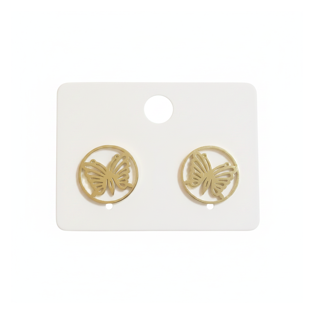 Discover the charm of delicacy with "Sofia Butterfly" stud earrings. These lovely earrings, crafted from high-quality 316L surgical steel in a beautiful golden hue, feature an openwork butterfly motif within a circle. Their subtle design makes them a perfect accessory for everyday outfits, adding lightness and femininity. Excellent for nature lovers and those who appreciate minimalist elegance, valuing comfort and durability. Accentuate your style with this unique jewelry.