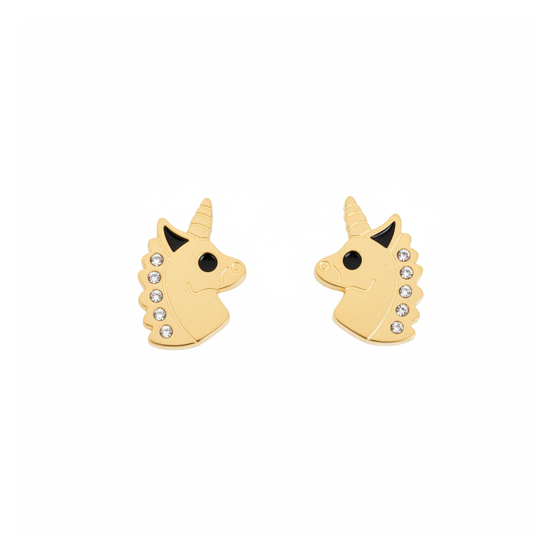 Discover magic with our charming unicorn stud earrings. These golden earrings, adorned with sparkling zirconia stones in the mane, will add a fairy-tale charm to any outfit. Made from durable material, they are perfect for everyday wear as well as special occasions, emphasizing a playful and joyful character. An excellent choice for lovers of delicate yet expressive jewelry.