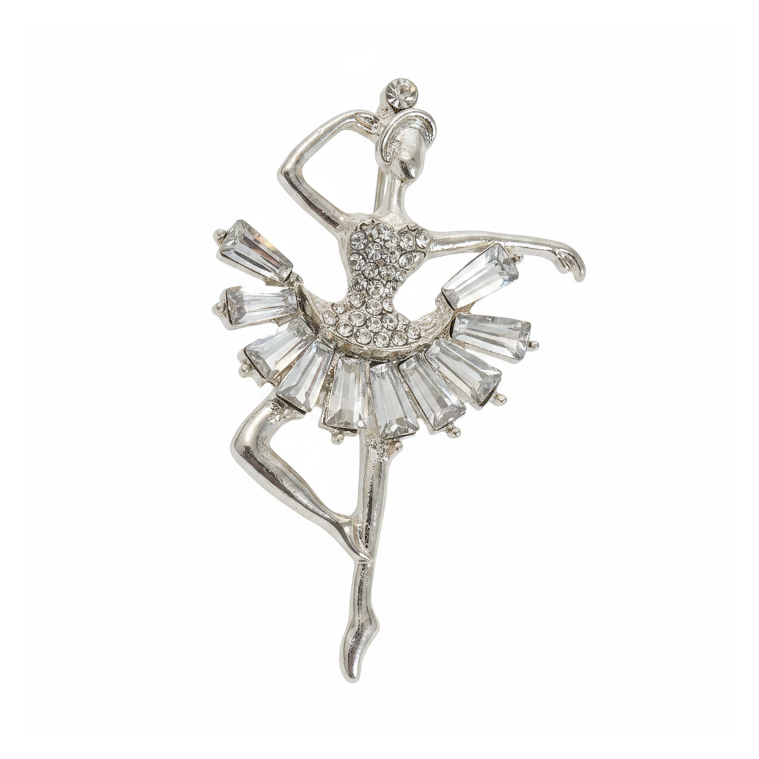 Oczaruj wszystkich z naszą broszką Baletnica, która przeniesie Cię w świat elegancji i gracji. Ta misternie wykonana ozdoba przedstawia tancerkę w pełnym wdzięku ruchu, której tutu i gorset zdobią lśniące cyrkonie. Idealna do przypięcia do marynarki, sukienki czy szala, doda blasku każdej stylizacji. To doskonały wybór dla miłośniczek baletu i klasycznej biżuterii, podkreślający indywidualny styl i wyrafinowany gust. Sprawdzi się zarówno na wieczorne wyjścia, jak i jako elegancki akcent w codziennym ubiorze.