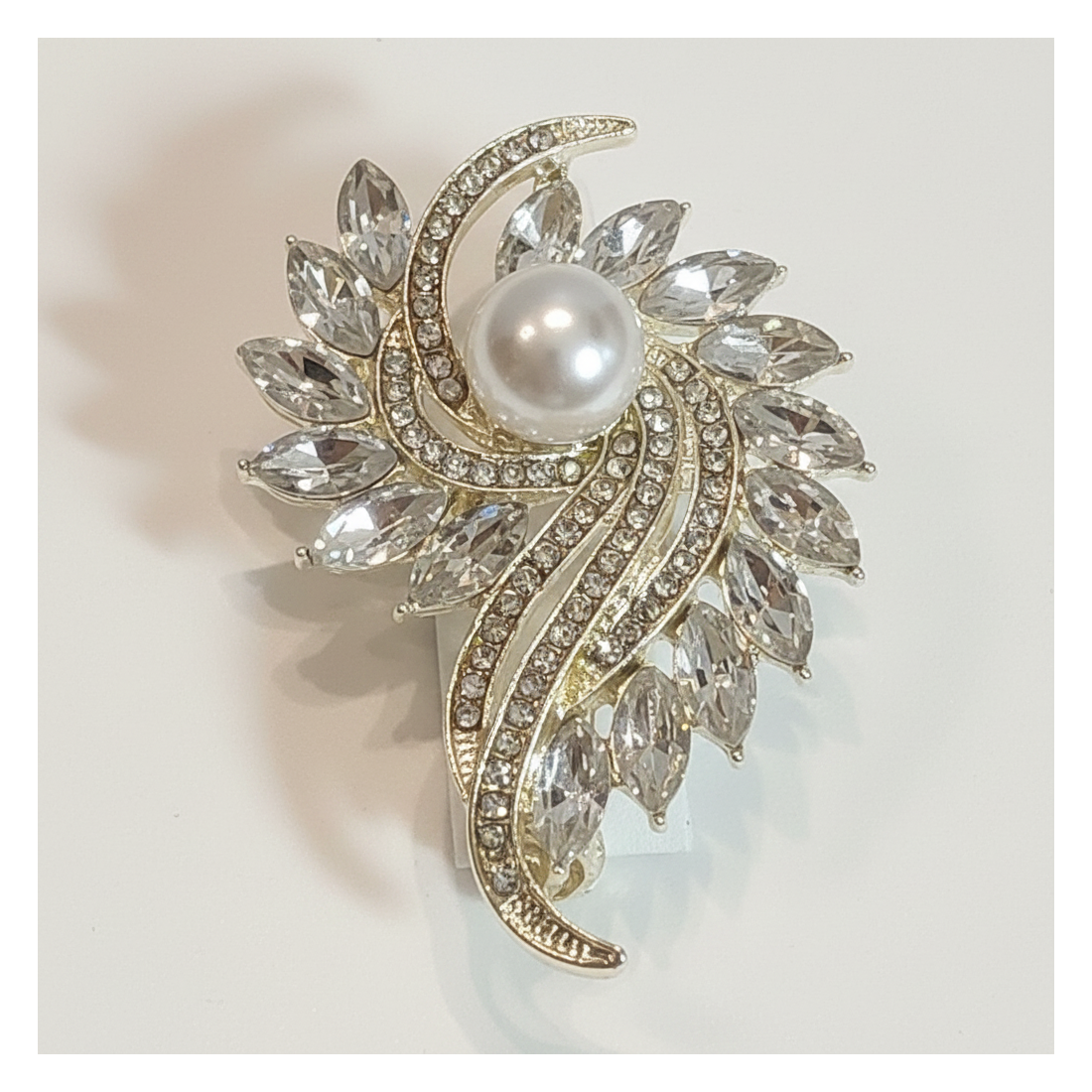 Ta olśniewająca broszka to kwintesencja elegancji i blasku. Centralna perła otoczona jest misternie ułożonymi cyrkoniami, tworząc wzór przypominający liście lub pióra. Wykonana ze stopu metali w srebrnym odcieniu, doskonale uzupełni wieczorową kreację, żakiet czy szal. Dodaj odrobinę luksusu do swojego stroju i zachwyć otoczenie.