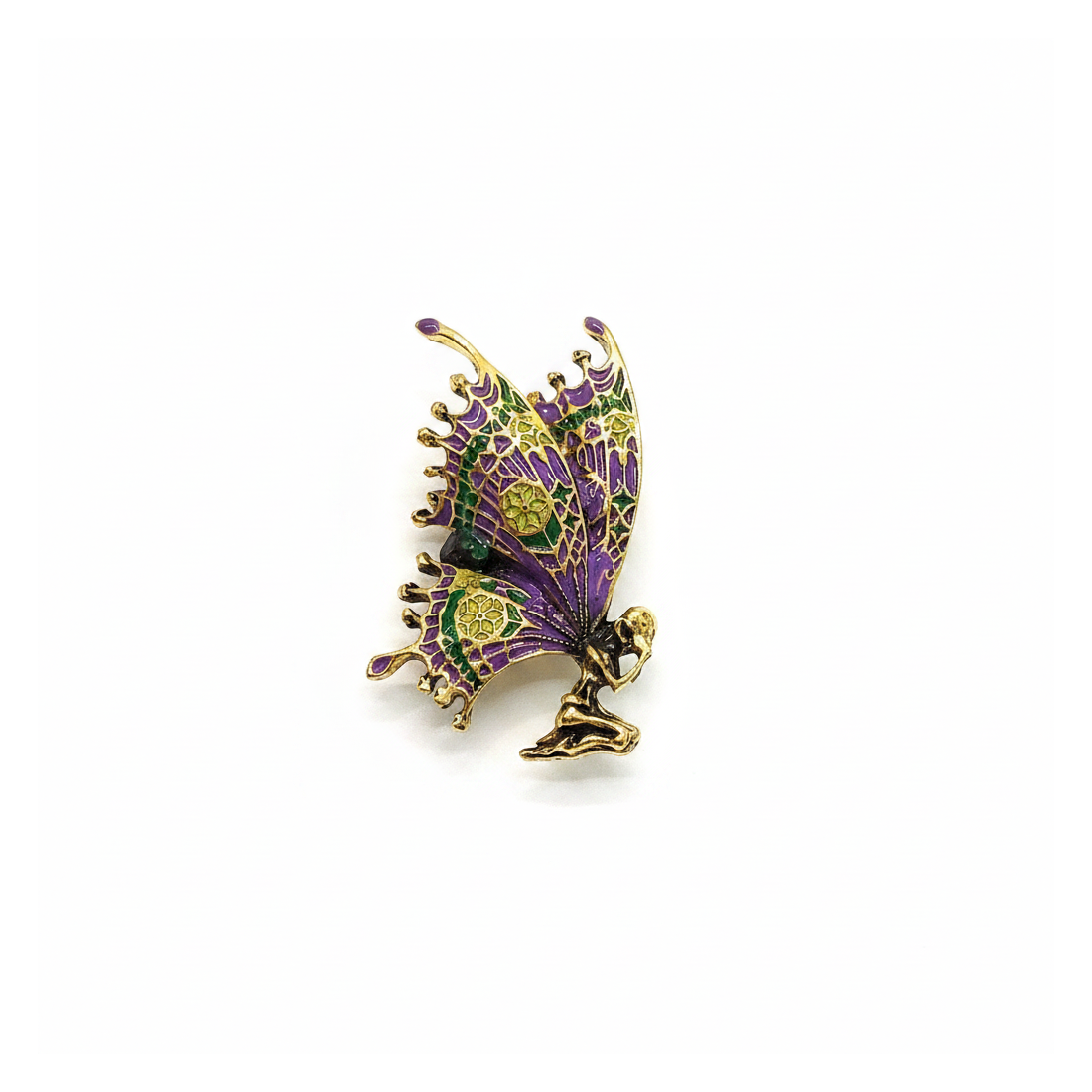Zachwyć się niezwykłą broszką "Iris", która przeniesie Cię do świata baśni. Jej misternie wykonane skrzydło motyla, ozdobione fioletową i zieloną emalią oraz złotymi detalami, emanuje subtelnym blaskiem. Ta elegancka ozdoba doskonale podkreśli Twój indywidualny styl, dodając uroku każdej kreacji. Idealna na specjalne okazje, jak i do codziennych stylizacji, które potrzebują odrobiny magii. Podaruj sobie lub bliskiej osobie ten wyjątkowy akcent glamour.