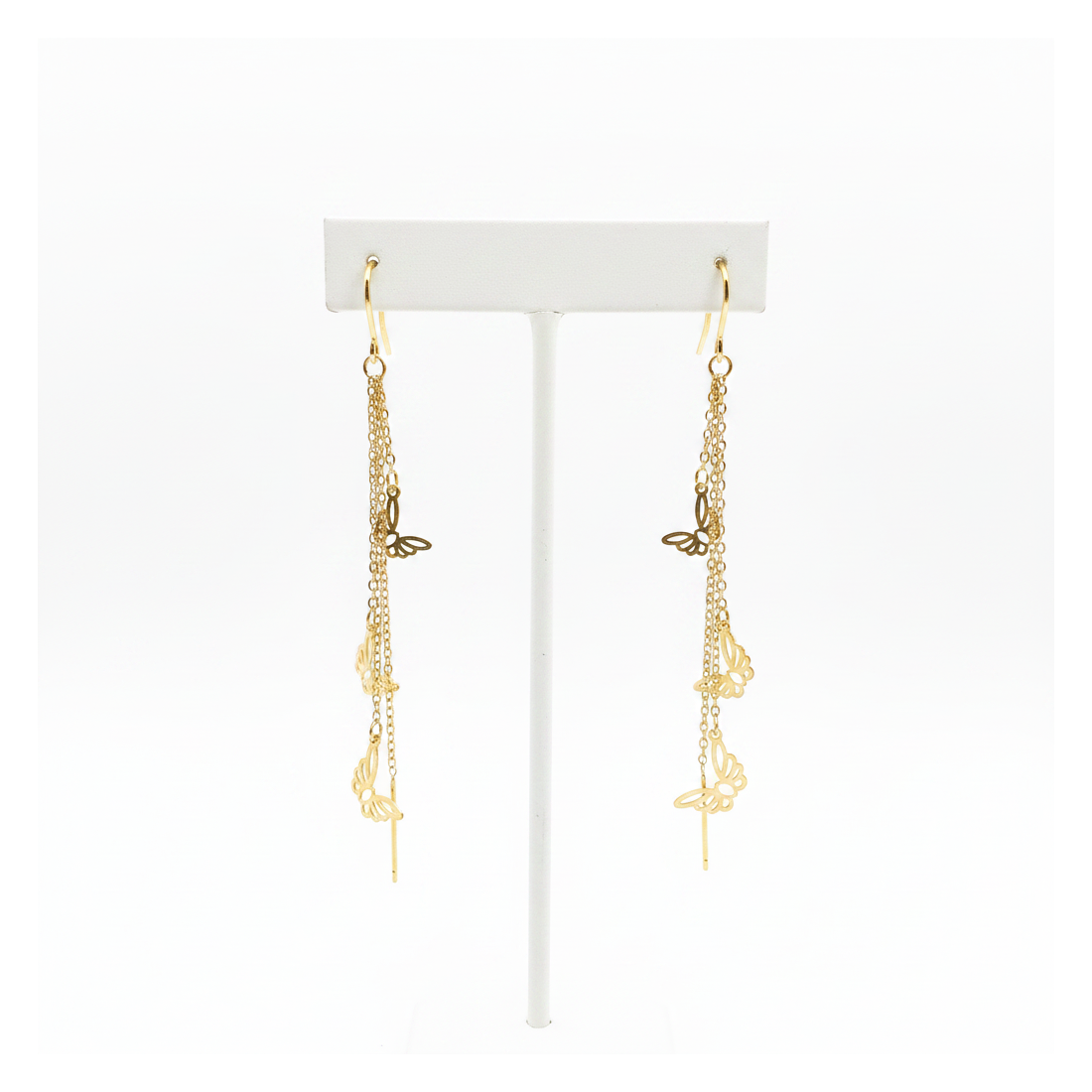 Odkryj urok delikatności z naszymi kolczykami Motylki Złote. Te długie, wiszące kolczyki, wykonane ze stali chirurgicznej w złotym kolorze, zdobią urocze motylki zawieszone na subtelnych łańcuszkach. Ich lekka konstrukcja pięknie porusza się z każdym ruchem, dodając blasku i kobiecości. Idealne do letnich stylizacji, na randkę czy jako elegancki dodatek na wieczorne wyjście.