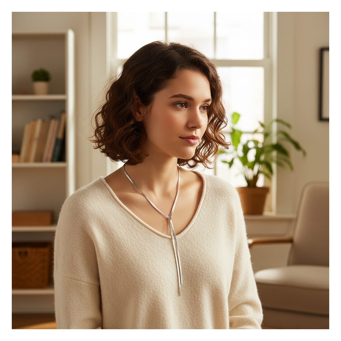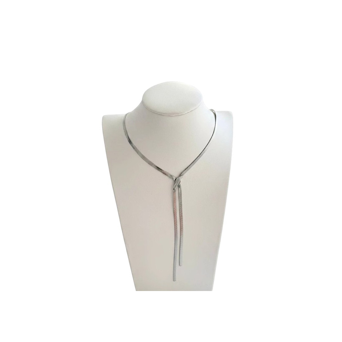 Odkryj urok naszyjnika Lariette, który doda blasku każdej stylizacji. Ten elegancki naszyjnik typu lariat, wykonany z płaskiego łańcuszka typu wężyk, pięknie układa się na dekolcie. Jego nowoczesny design z subtelnym węzłem i zwisającymi końcówkami sprawia, że jest idealny zarówno na wieczorne wyjścia, jak i do codziennych, bardziej wyrafinowanych strojów. Srebrny odcień doskonale komponuje się z różnymi kolorami, podkreślając Twój indywidualny styl.