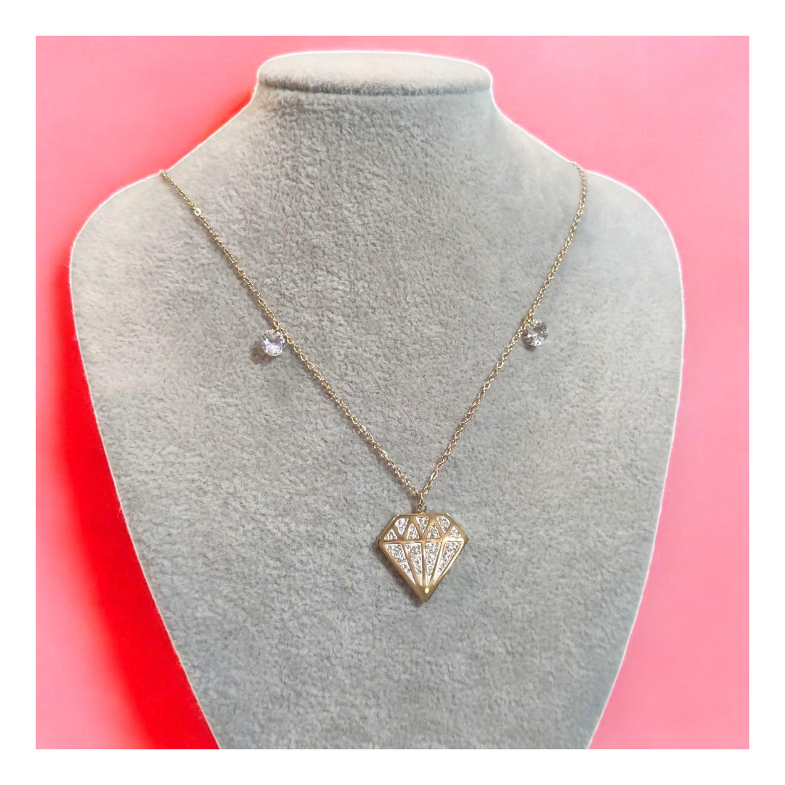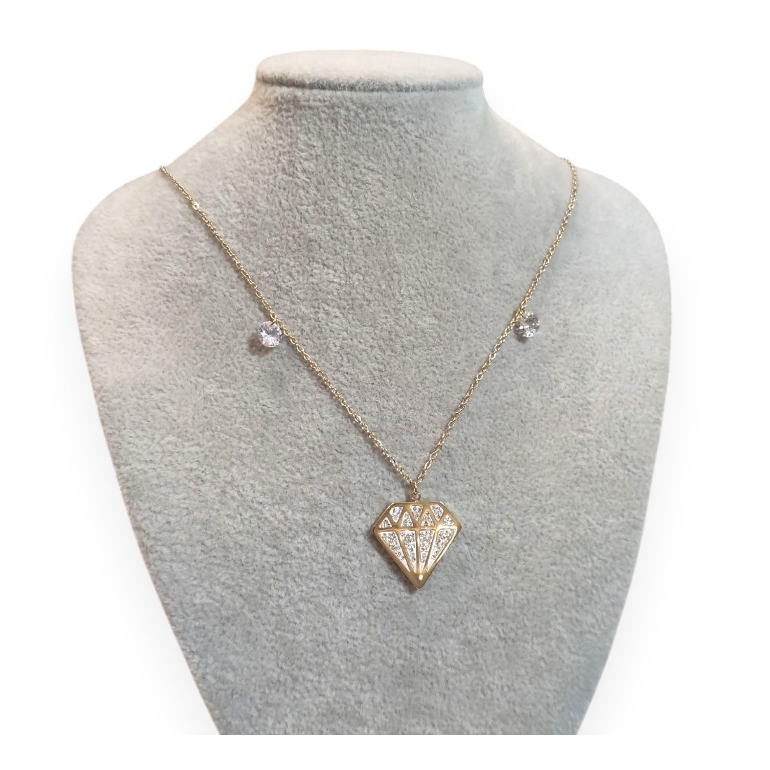 Złoty naszyjnik z zawieszką w kształcie diamentu to kwintesencja elegancji i nowoczesnego stylu. Centralny element, bogato zdobiony lśniącymi cyrkoniami, przyciąga wzrok i dodaje blasku. Delikatny łańcuszek, ozdobiony dodatkowo dwoma mniejszymi cyrkoniami, pięknie układa się na dekolcie. Idealny na wieczorne wyjścia, randki czy jako stylowy akcent do codziennych stylizacji. Podkreśl swój indywidualny styl z tym wyjątkowym dodatkiem.