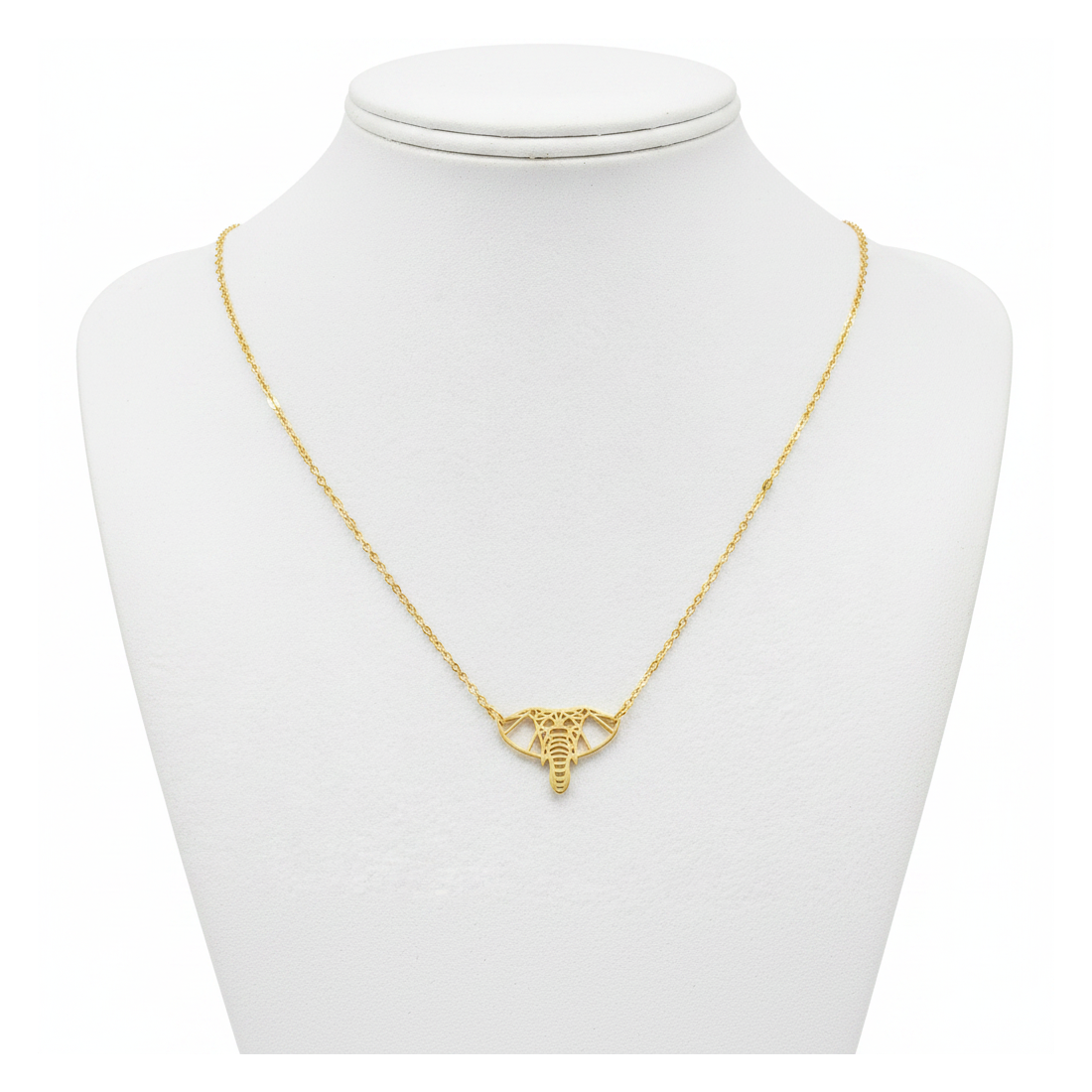 Odkryj urok dalekich podróży z naszyjnikiem Elephant, który zachwyca misternie wykonanym wisiorkiem w kształcie głowy słonia. Jego ażurowy design i złoty blask dodają subtelności każdej stylizacji. Idealny do noszenia na co dzień, jak i na specjalne okazje, ten naszyjnik podkreśli Twój indywidualny styl. Wykonany z dbałością o detale, będzie pięknym akcentem Twojej biżuterii.