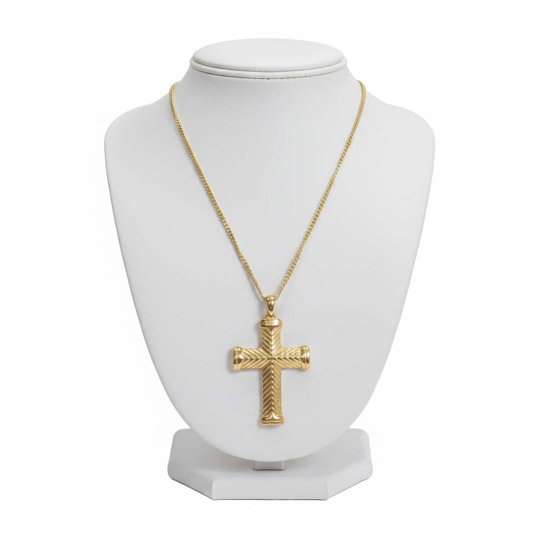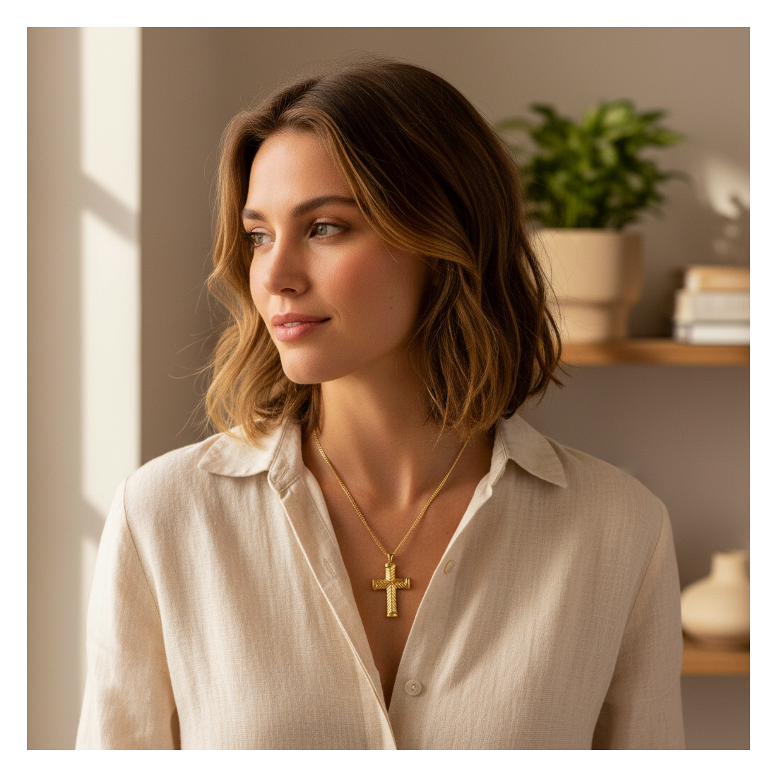 Odkryj piękno i symbolikę z naszym naszyjnikiem Krzyż. Ten wyjątkowy dodatek w złotym kolorze, z misternym wzorem na krzyżu, emanuje klasą i elegancją. Idealnie pasuje do różnorodnych stylizacji, od casualowych po bardziej formalne, dodając im subtelnego blasku. To doskonały wybór dla osób ceniących sobie biżuterię z przesłaniem, która podkreśla indywidualny styl. Noś go na co dzień lub na specjalne okazje, by zawsze czuć się wyjątkowo.