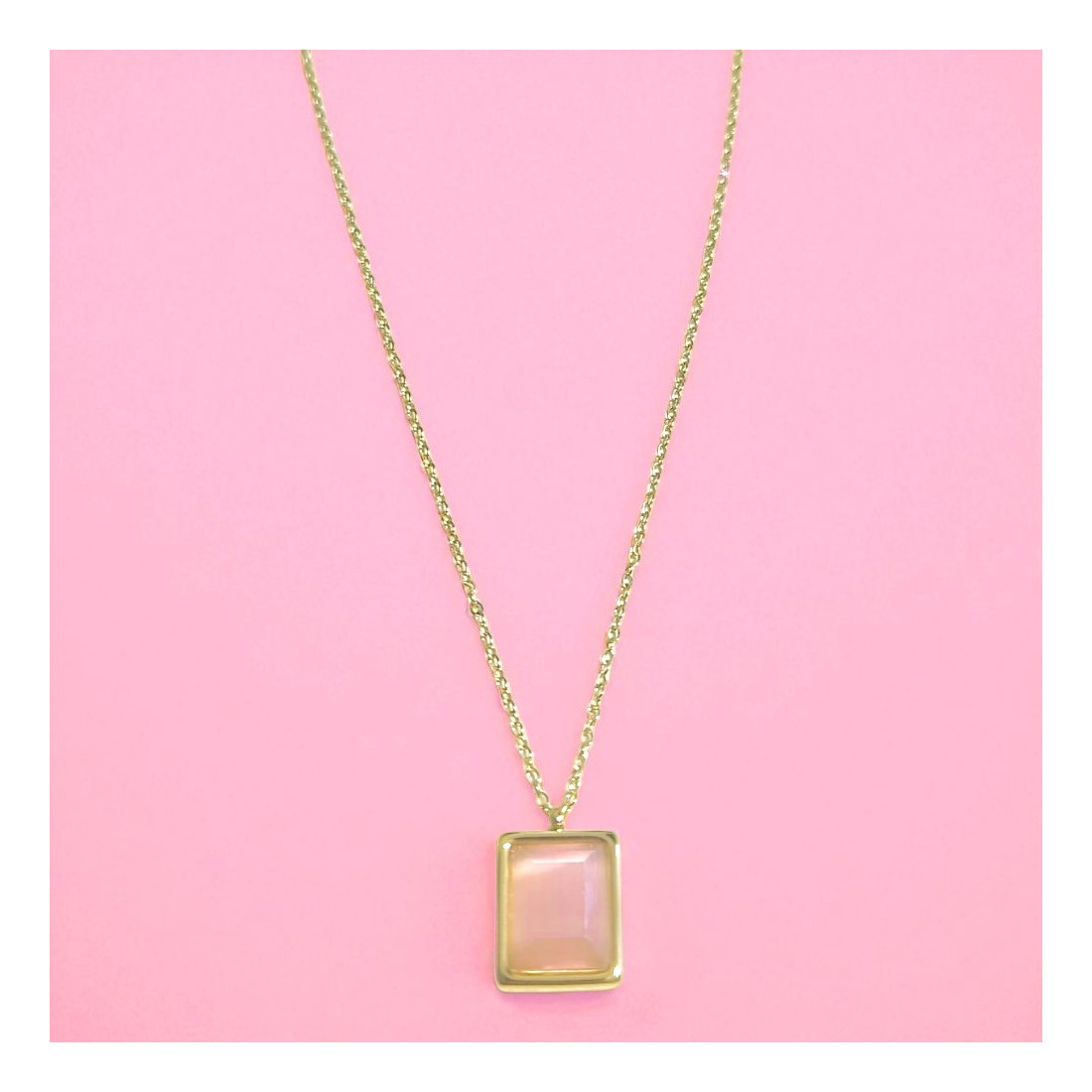 Odkryj subtelność i blask z naszyjnikiem Różowy Prostokącik. Ten uroczy dodatek, z prostokątnym wisiorkiem o opalizującym różowym odcieniu, doskonale podkreśli Twoją kobiecość. Złoty łańcuszek pięknie komponuje się z delikatnym kamieniem, tworząc harmonijną całość. Idealny na co dzień, do pracy czy na wieczorne wyjścia, dodając stylizacji nuty elegancji i nowoczesności.
