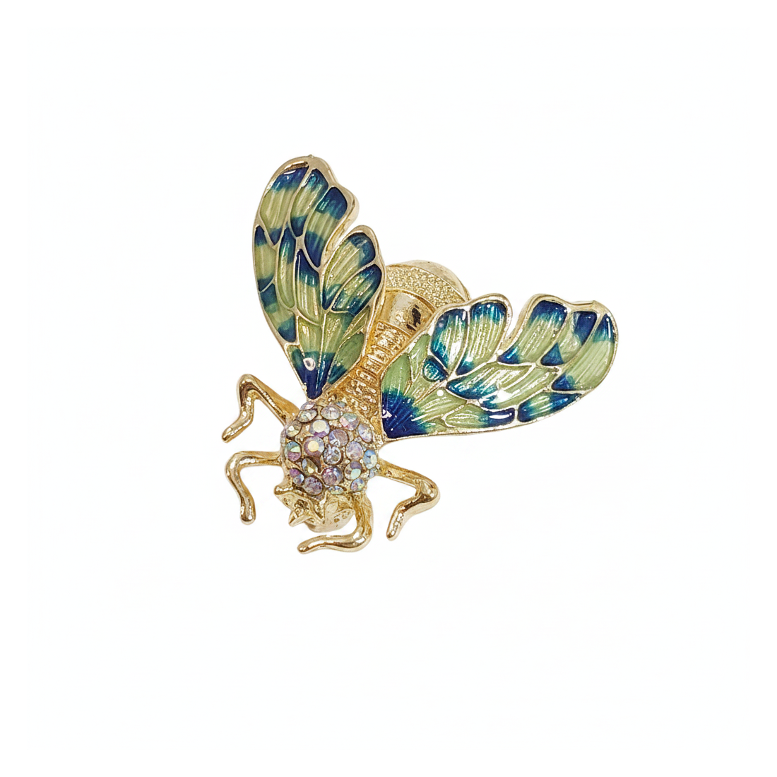 Objavte čaro tejto jedinečnej brošne v tvare hmyzu, ktorá zaujme precíznym spracovaním a bohatými detailmi. Jej zlaté telo zdobia trblietavé kryštály, zatiaľ čo krídla sú pokryté farebným smaltom v odtieňoch modrej a zelenej, vytvárajúc fascinujúci vzor. Tento elegantný šperk je ideálnym spôsobom, ako dodať nádych luxusu a originality každému outfitu, od každodenného po večerný. Pripnite si ju na obľúbenú bundu, šál alebo kabelku, aby ste zdôraznili svoj jedinečný štýl a pritiahli pozornosť. Glamour Brošňa Hmyz je nevyhnutnosťou pre milovníčky sofistikovaných doplnkov.