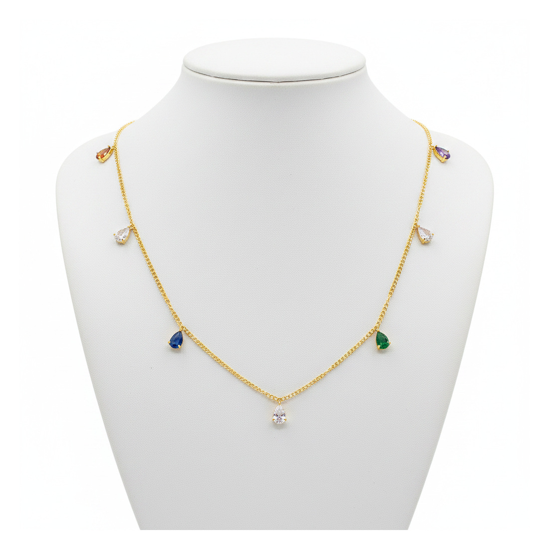 Objavte čaro náhrdelníka Kvapky Šťastia, ktorý očarí jemným leskom a elegantným dizajnom. Zlatá retiazka je zdobená očarujúcimi, viacfarebnými zirkónmi v tvare kvapiek, dodávajúc šperku ľahkosť a sviežosť. Tento jemný doplnok sa skvele hodí ako na každodenné nosenie, tak aj na špeciálne príležitosti, zdôrazňujúc váš individuálny štýl. Je to ideálna voľba pre ženy, ktoré ocenia diskrétny pôvab a nadčasovú eleganciu.