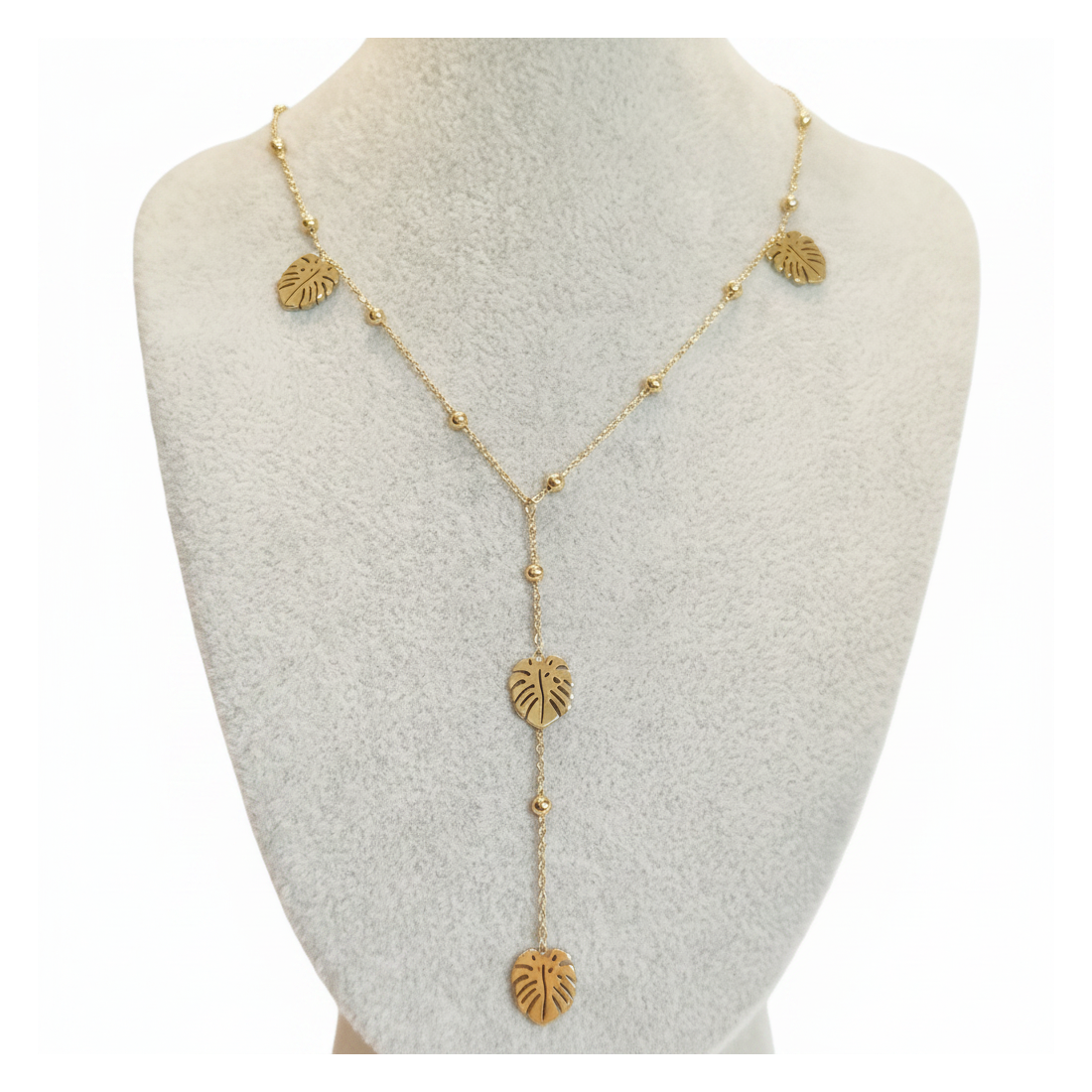 Objavte čaro trópov s naším náhrdelníkom Liana, ktorý očarí jemnou retiazkou a úchvatnými príveskami v tvare listov monstery. Tento elegantný, zlatý doplnok dokonale doplní ako každodenný, tak aj večerný vzhľad a dodá mu nádych exotiky. Jemné korálky votkané do retiazky zaisťujú ľahkosť a lesk. Ideálny na leto, dovolenku alebo ako darček pre milovníčky prírody a módy. Cíťte sa výnimočne so šperkami Marsandia.