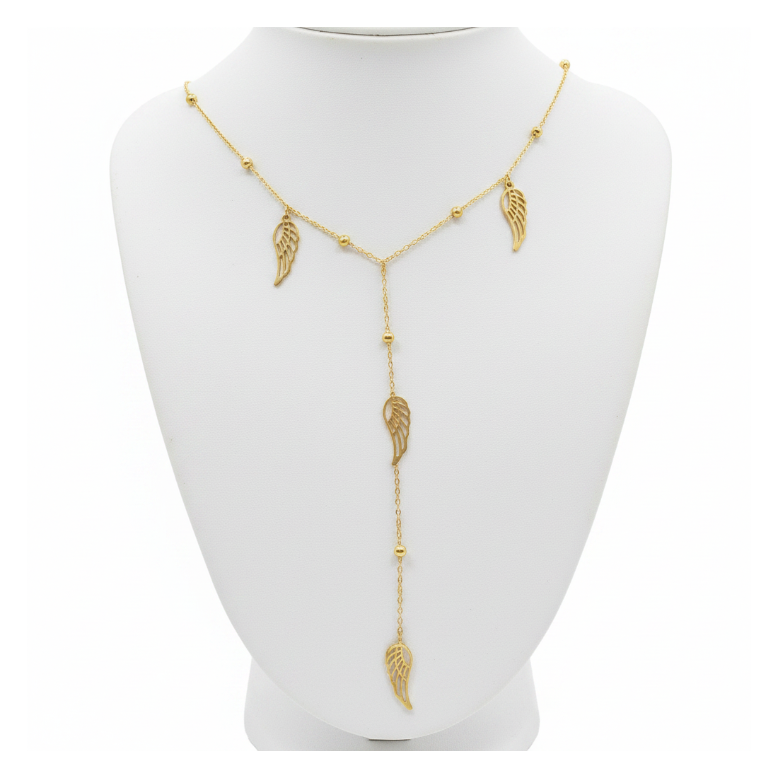 Objavte ľahkosť a eleganciu s naším zlatým lariat náhrdelníkom, zdobeným jemnými motívmi krídel. Tento jedinečný doplnok, vyrobený z pozlátenej chirurgickej ocele, dokonale zvýrazní váš dekolt a dodá iskru každému outfitu. Ideálny na špeciálne príležitosti aj každodenné nosenie, prináša dotyk jemného pôvabu. Jeho všestranný dizajn sa krásne hodí k hlbokým výstrihom aj jednoduchým blúzkam. Cíťte sa výnimočne a dodajte svojmu vzhľadu štipku mágie.