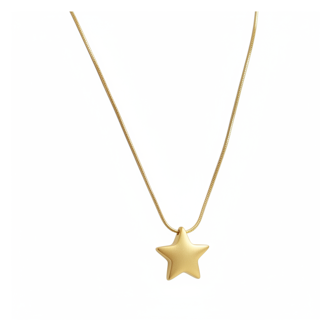 Rozžiarte svoj vzhľad s náhrdelníkom Hviezda Stella, ktorý vyžaruje jemný, podmanivý lesk. Tento očarujúci doplnok, vyrobený z odolnej chirurgickej ocele v zlatom odtieni, zaujme svojím minimalistickým, ale výrazným dizajnom. Je ideálny na vylepšenie vášho každodenného štýlu s nádychom glamour a rovnako sa hodí ako elegantný akcent na večerné príležitosti. Vyjadrite svoju individualitu a dodajte každému outfitu štipku kúzla.
