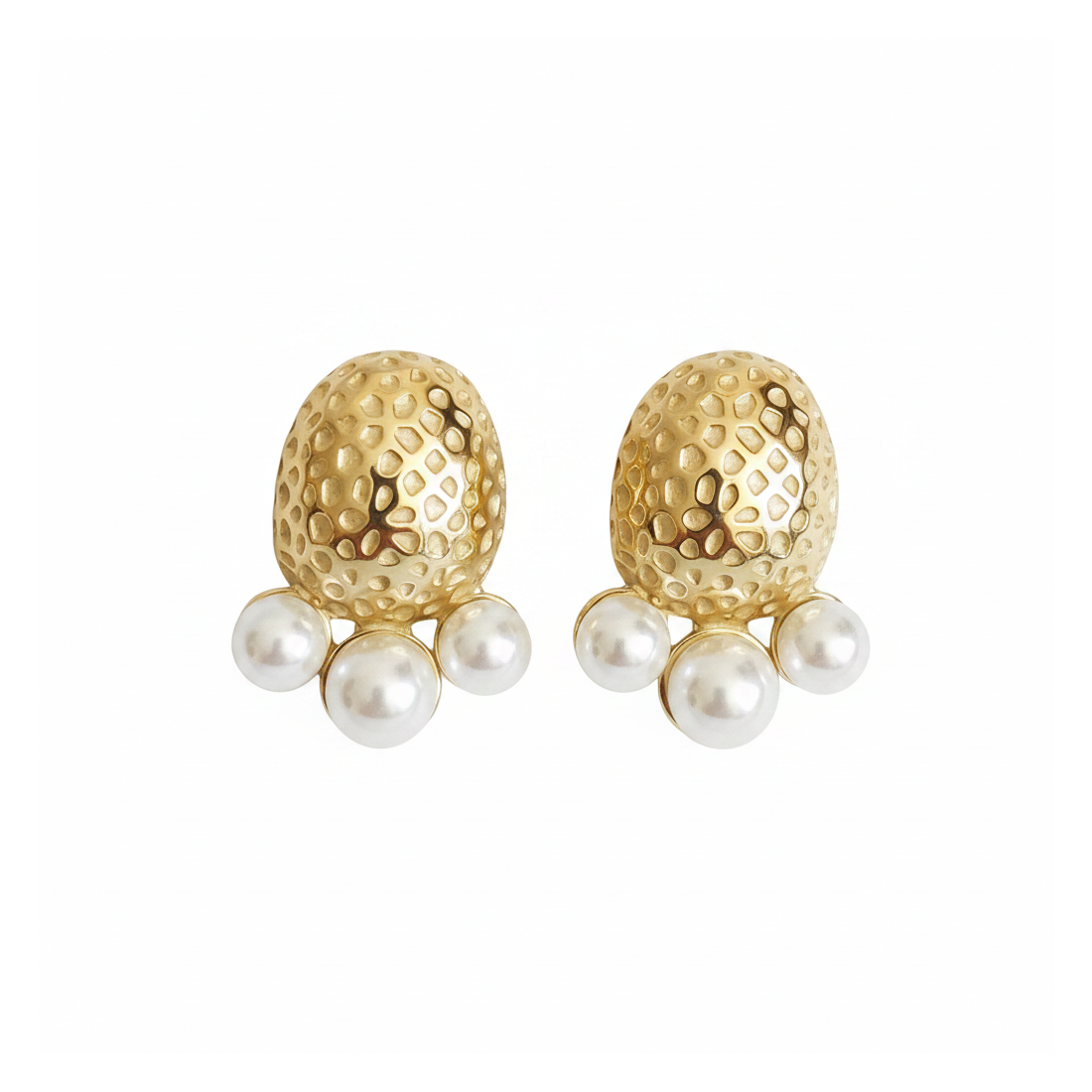 Objavte lesk týchto náušníc Xuping, ktoré spájajú moderný dizajn s klasickou eleganciou. Ich zlatý, textúrovaný povrch krásne odráža svetlo, zatiaľ čo tri jemné perly dodávajú jedinečné čaro. Ideálne na večerné nosenie alebo ako štýlový doplnok k denným outfitom. Zdôraznite svoj individuálny štýl a cíťte sa výnimočne s týmto nádherným šperkom.