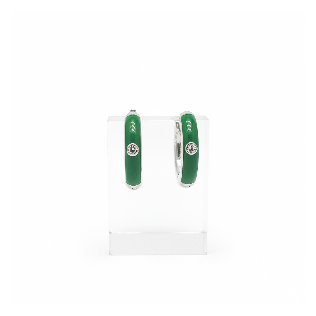 Tieto očarujúce kruhové náušnice sú esenciou moderného pôvabu. Ich intenzívny zelený smalt v kombinácii s oslnivým zirkónom vytvára jedinečný farebný akcent. Vyrobené z kovovej zliatiny, zaisťujú odolnosť a pohodlie pri nosení. Ideálne na každodenné nosenie aj večerné akcie, dodajú eleganciu a sviežosť každému outfitu.