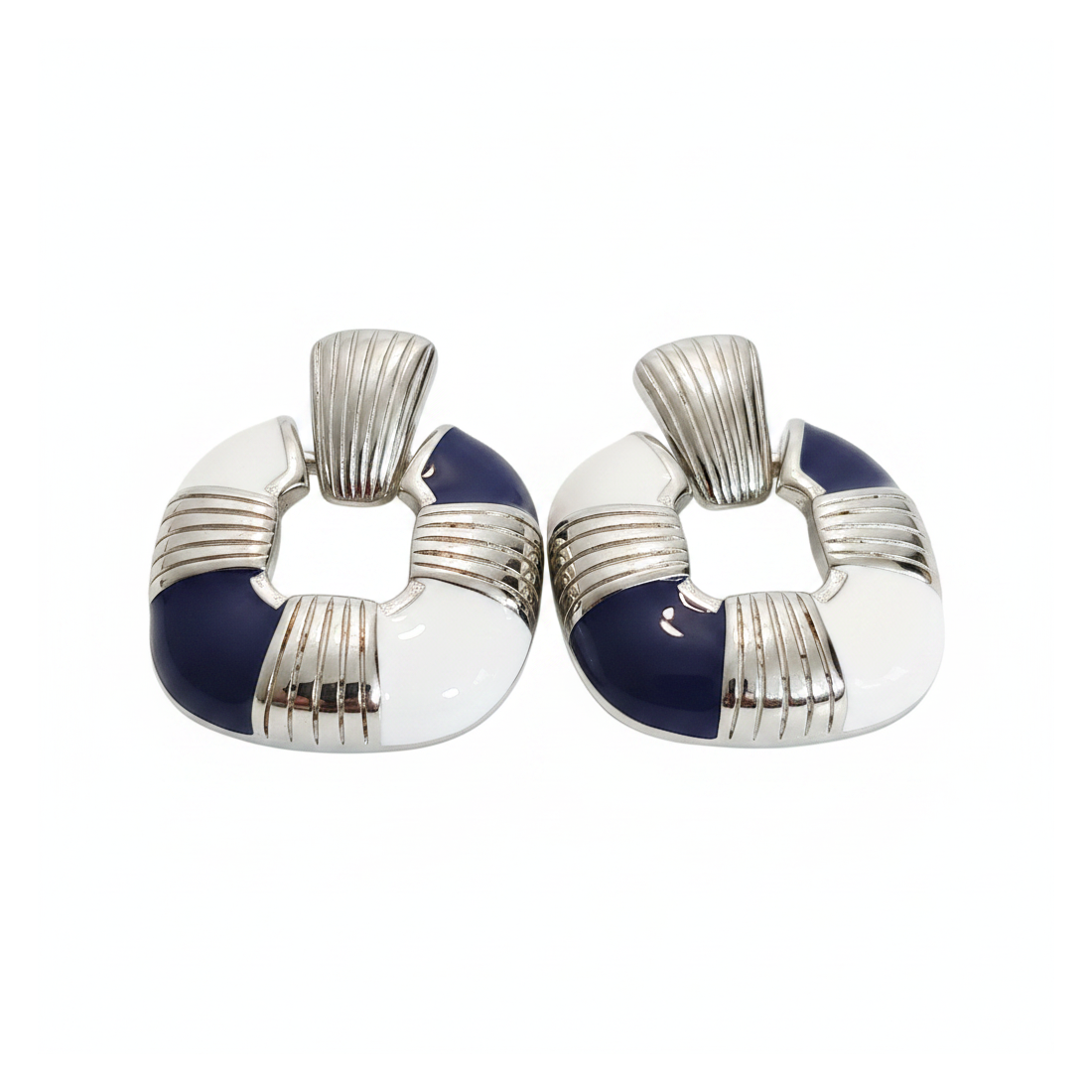 Objavte čaro leta s náušnicami Marina, ktoré zaujmú svojím námorníckym dizajnom. Kombinácia tmavomodrého a bieleho smaltu s lesklým kovom vytvára sofistikovaný a svieži vzhľad. Tieto štýlové náušnice dokonale doplnia vaše každodenné aj večerné outfity a dodajú im nádych dovolenkovej elegancie. Ideálne na stretnutia s priateľmi, rande alebo letné párty, podčiarkujúc váš jedinečný štýl.