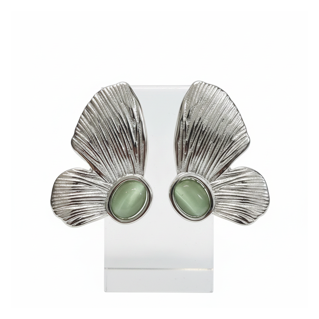 Objavte náušnice Flora, ktoré očarujú svojim jedinečným dizajnom inšpirovaným prírodou. Ich striebristý, textúrovaný povrch pripomína jemné listy, zatiaľ čo centrálne osadené zelené kabošony im dodávajú tajomný lesk. Tieto elegantné náušnice sú ideálnou voľbou na večerné vychádzky, oslavy alebo ako sofistikovaný doplnok k vášmu každodennému štýlu. Zdôraznite svoju individualitu a dodajte šmrnc každému outfitu.