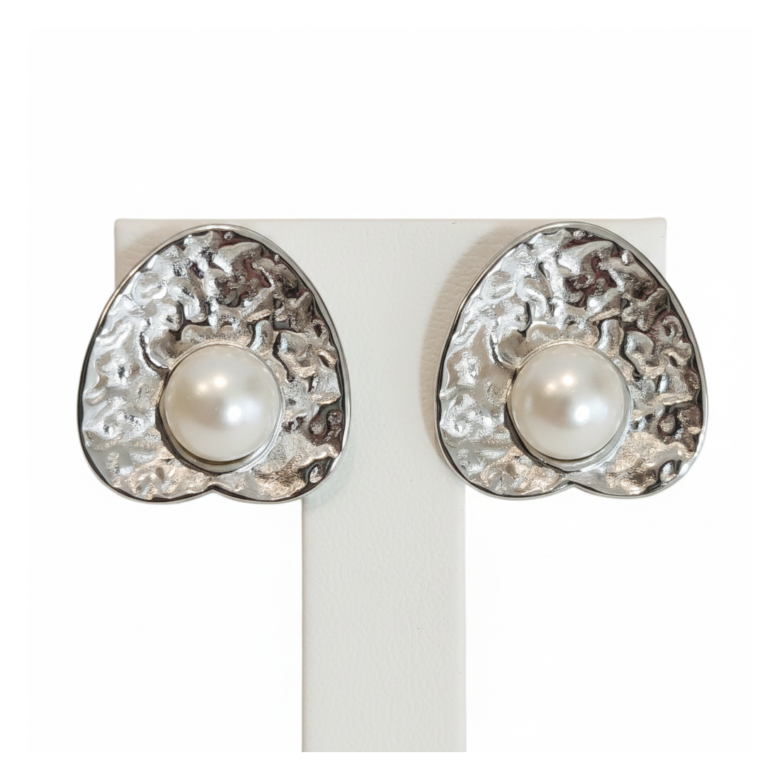 Objavte čaro náušníc "Perlové Srdiečka", ktoré spájajú romantický tvar s moderným dizajnom. Ich jedinečný, textúrovaný strieborný povrch krásne kontrastuje s centrálne osadenou, nepravidelnou perlou. Tieto elegantné napichovačky sa skvele hodia ako k denným outfitom, tak aj na večerné príležitosti, dodávajúc jemný lesk a triedu. Ideálne pre ženy, ktoré si cenia originalitu a nadčasovú eleganciu.